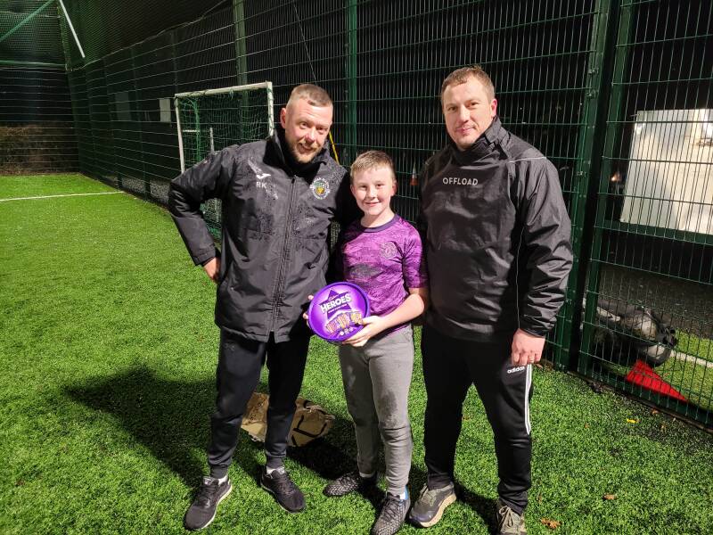 2021 U12B penalty king Mikey Lynch with coaches Richard Kilpatrick and Keith Nesbitt.