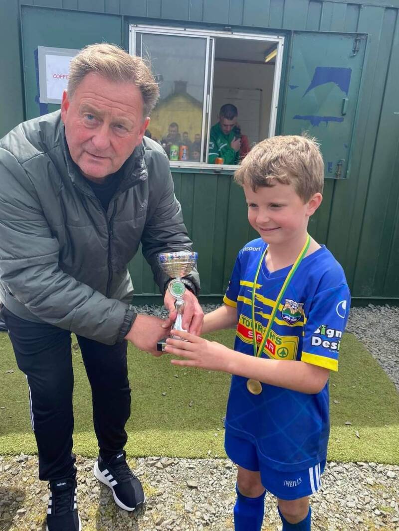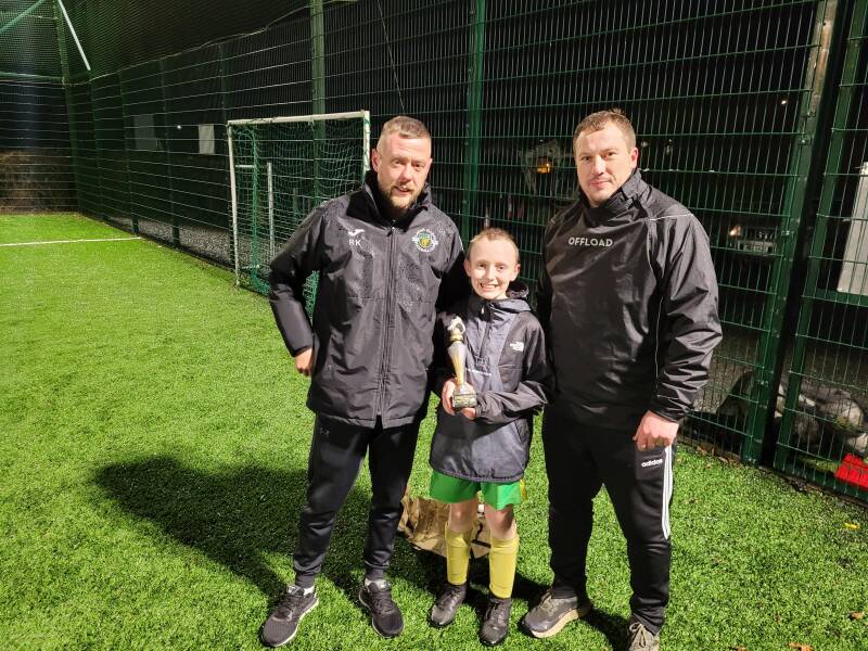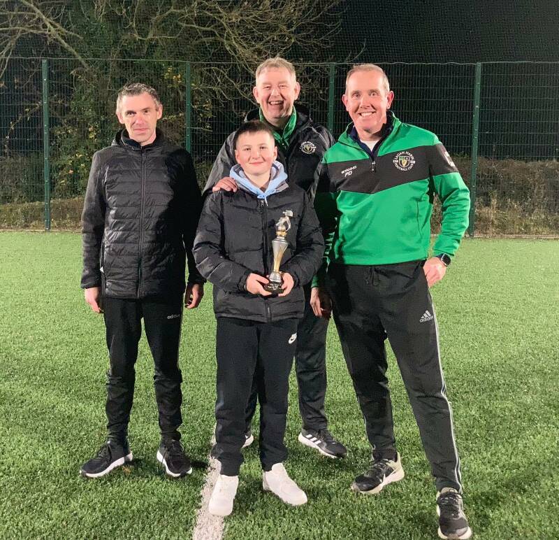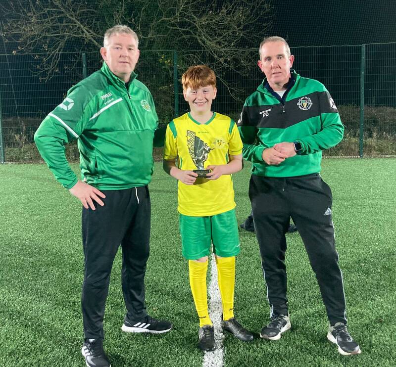 2021 U12A player of the year and top scorer(16 goals) Lukas Doherty with coaches Paddy Mc Gee and Paddy Doherty.