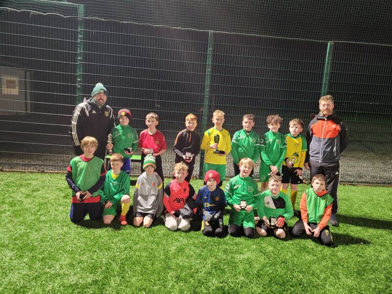 10/11/23. U12B award winners with coaches Ciaran Callaghan and Paul Cullen. Players player of the year: Derek Ramsey. Top Scorer: Kieran Cunningham. Player of the year: Adam Duncan.