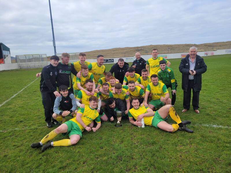 Our men's team. Division two league champions 2/4/23 after a 3-0 win v Gweedore Utd in Gweedore.