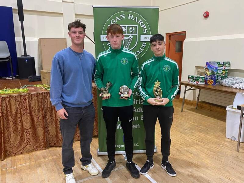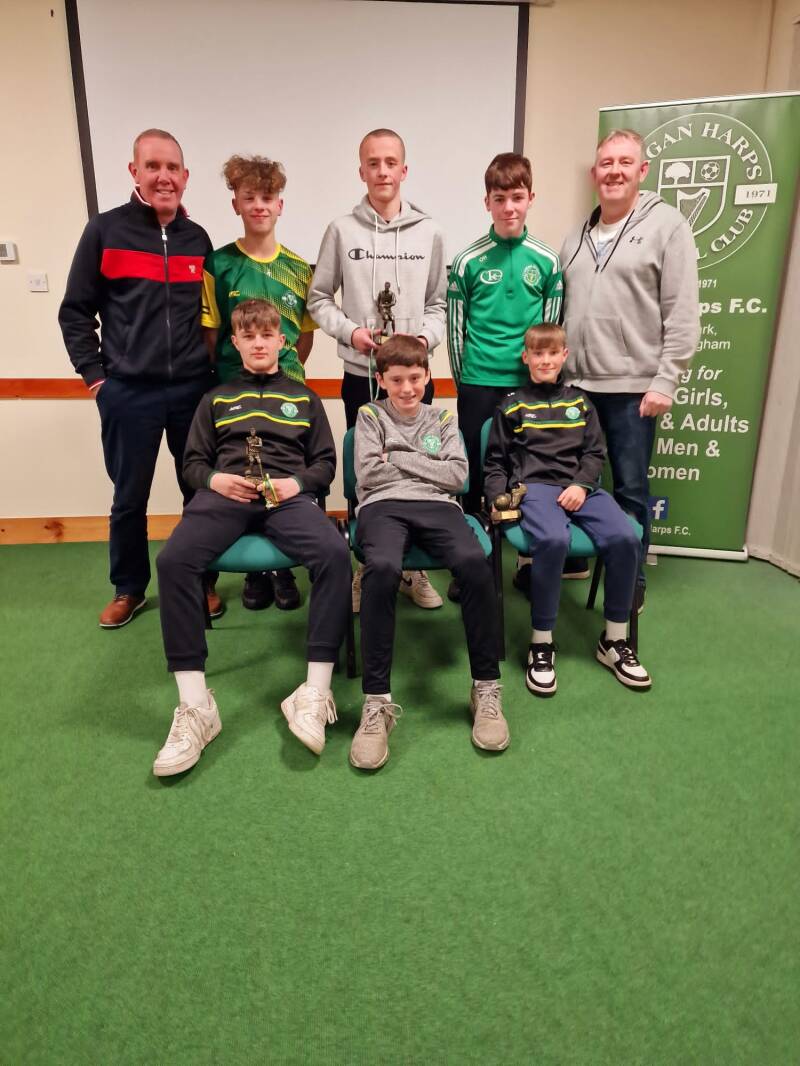 10/11/23. U14A's at our awards night. Includes players player of the year Jay Ramsey. Ross Russell accepted players of the year for Matthew Mc Ginley, who was unable to attend. Lukaz Doherty accepted top score for Drew Dowds who was unable to attend.