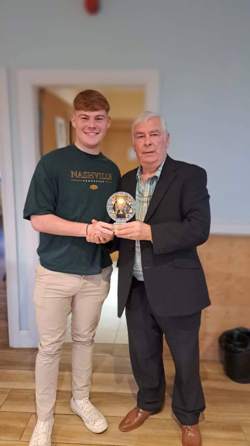 2021 u16 top scorer Aaron Donnell with senior manager Vinny Mc Laughlin.
