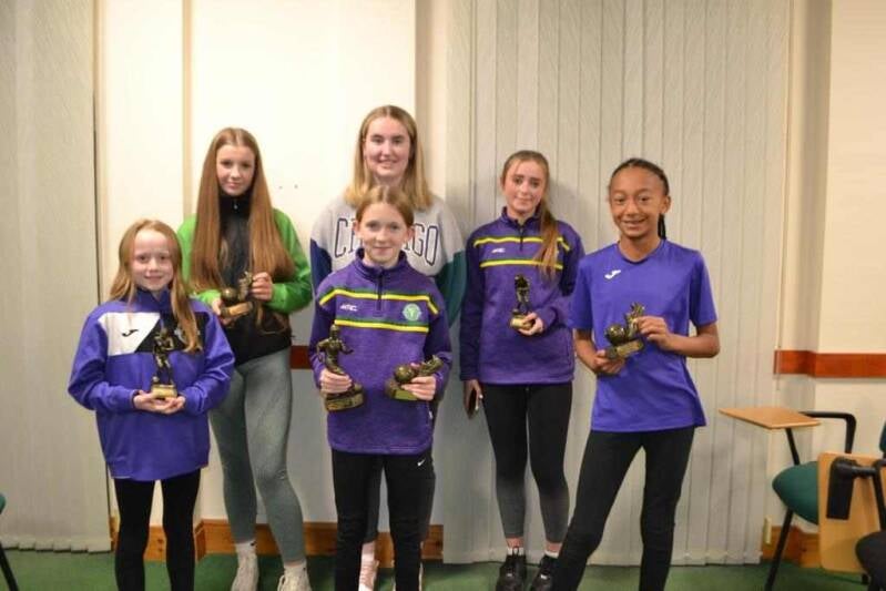 10/11/23. Special guest Erin Doherty with u12 and u14 award winners. U12 players player of the year Clodagh Kavanagh. U14s joint top scorer Jodie Rodgers. U12 player of the year and u14 joint top scorer Teaghan Doherty. U14 players player of the year Claragh Gallagher. U12s top scorer Amy Lateef.